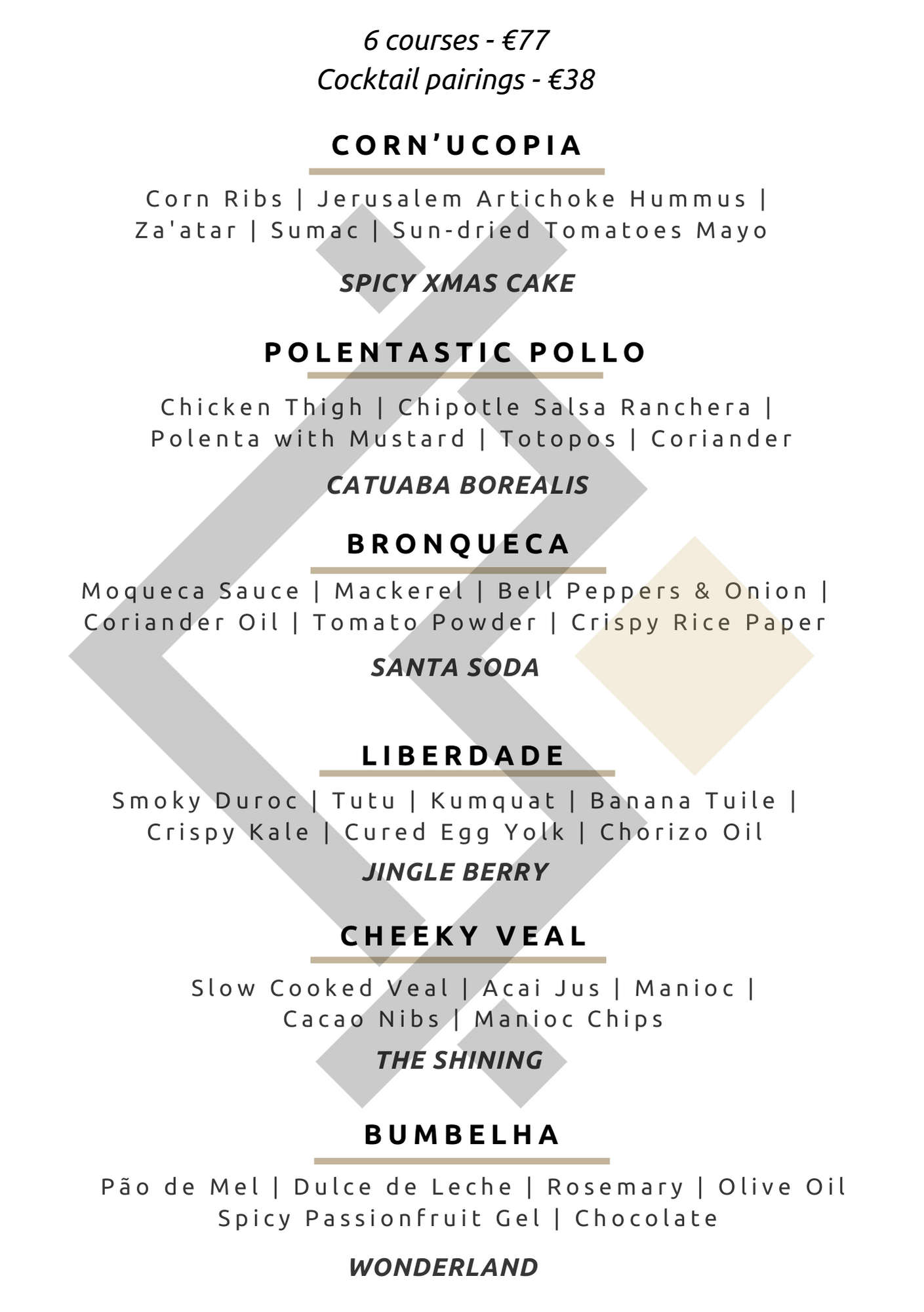 Our set menus also have the option of adding on cocktail pairings. Each cocktail carefully designed to pair with the specific dish, offering you an all round culinary experience.